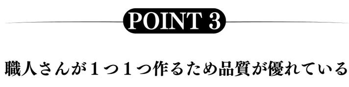 制作過程でどの工程も簡単には通過させず、きめ細やかな検品を経て1つ1つ製品が完成していきます。工場で大量生産される製品とは明らかに違うクオリティで差別化された価値をお届けします。