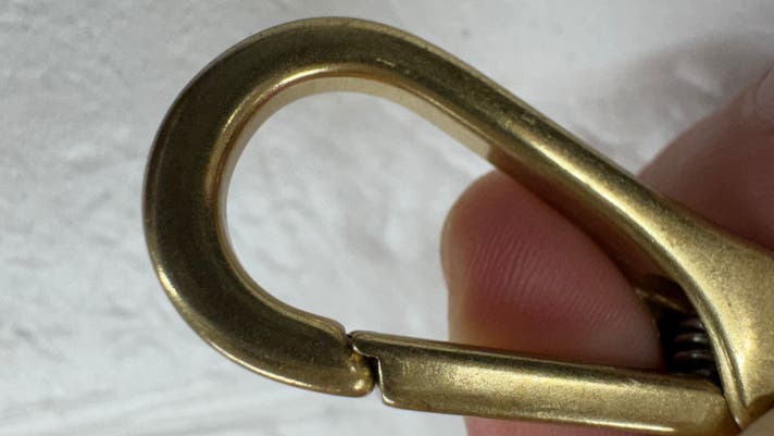 フックの部分にはバネが入っており、適度な硬さです。内側に金具を倒し使うことができます!