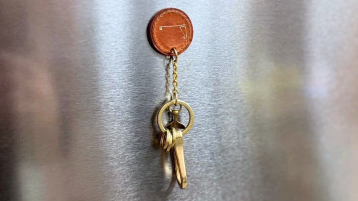 壁や冷蔵庫・玄関のドアに貼って使うだけで、鍵を出掛け前後に迷わず片付けられて便利です。使わない時もペタッと貼っておくと家具と一体化します。